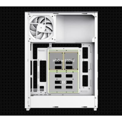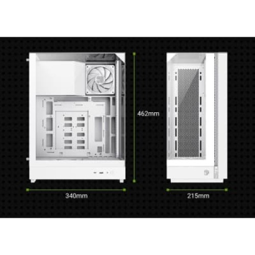 Геймерські, Miditower, Micro - ATX, Mini - ITX, Слотів розширення - 5, Вентилятори - 2 х 120 мм, Додатково - Back 3x12 см, GPU - 382 мм, CPU - 160 мм, ARGB-підсвічування, 340х215х462 мм, 5.7, білий
