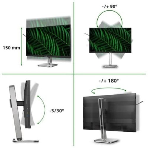 27", IPS, 2560 x 1440, 100 Гц, 16:9, 300 кд/м2, 1500:1, 16.02 Вт, 1 х HDMI, 2 x DisplayPort, RJ-45, 2 x USB Type-C, 4 x USB 3.2, 1 х 3.5мм Mini-Jack, поворот монітора (Swivel), поворотний екран (Pivot), регулювання нахилу, регулювання по висоті, 614 x 543 x 235 мм, VESA - 100x100 мм, 2 х 3 Вт, 7.19 кг, сріблястий, чорний