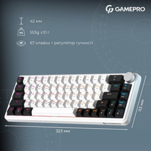 Клавіатура GamePro Asgard Valhalla MK210W Pro 65 RGB Wireless/Bluetooth/USB White (MK210W Pro)