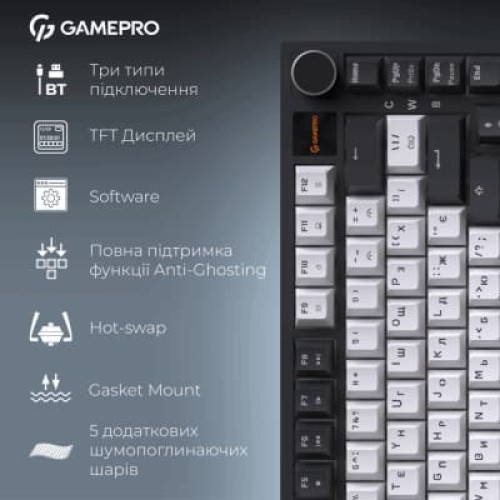 Клавіатура GamePro Asgard Valhalla Pro MK160B-D-Pro Rainy Switch Wireless/Bluetooth/USB UA Black (MK