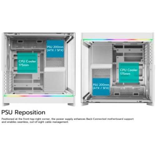 Геймерські, Miditower, ATX, Micro - ATX, Mini - ITX, Слотів розширення - 7, Вентилятори - 5 х 120 мм, Додатково - Top 3x12 см, GPU - до 420 мм, CPU - 175 мм, PSU - 200 мм, кулери з підсвічуванням, на нижній панелі, на задній панелі, світлодіодним системи освітлення, 240 x 480 x 480 мм, 10 кг, білий