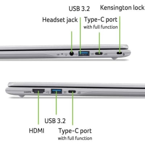 15.6", 1920х1080 (FullHD), IPS, Intel Pentium N250 (1.3 - 3.8 ГГц), 8 ГБ, SSD - 128 ГБ, Intel UHD Graphics, Chrome OS, 53 Втг, зарядка від USB, українська клавіатура, 1.59 кг, сріблястий