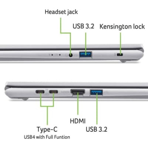 15.6", 1920х1080 (FullHD), IPS, Intel Core 5 120U (0.9 - 5.0 ГГц), 16 ГБ, SSD - 512 ГБ, Intel Iris Graphics, Linux, 53 Втг, гніздо для замка Kensington, зарядка від USB, українська клавіатура, 1.5 кг, сріблястий